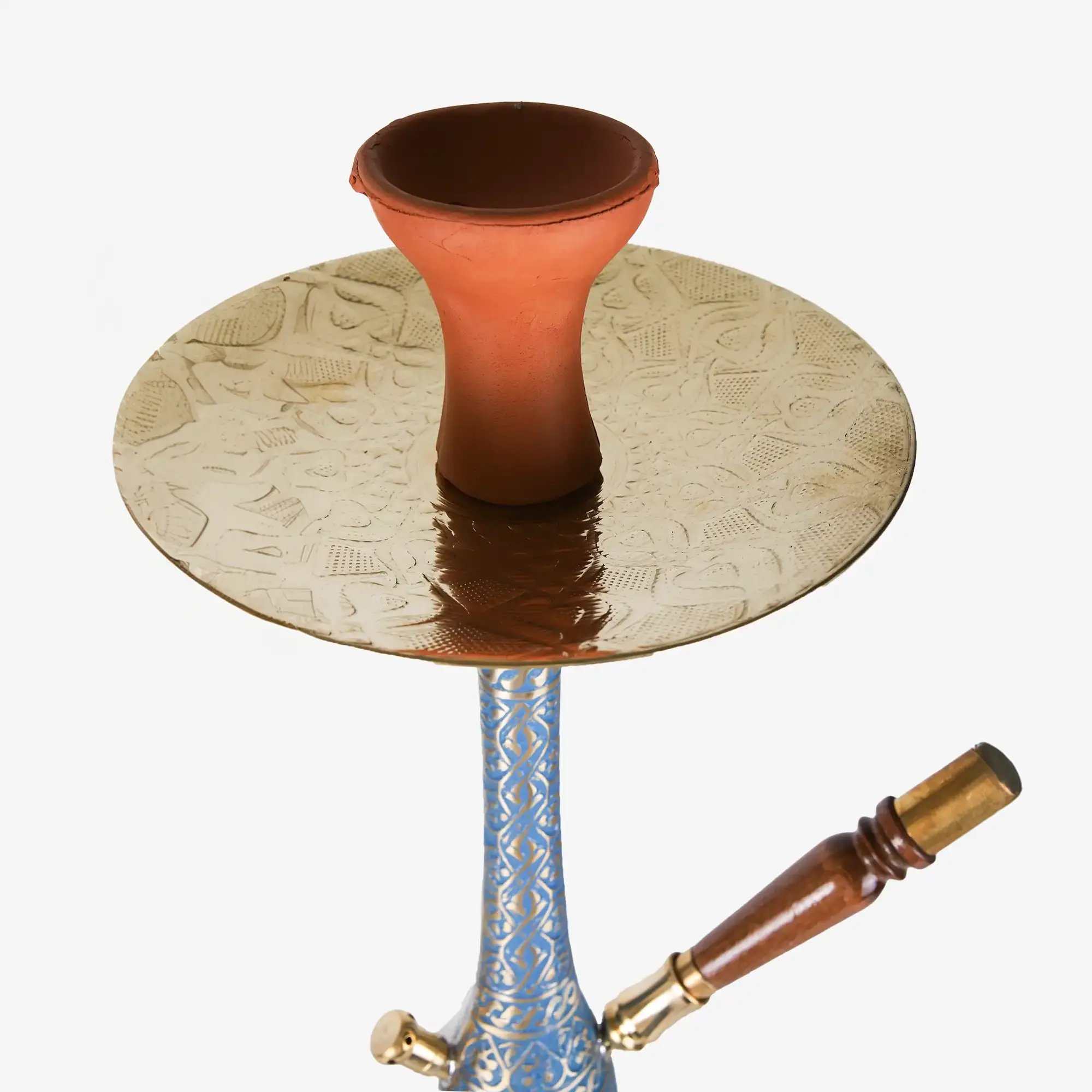 Vidalı gövde özelliğine sahiptir, pirinç metal tepsi, keçi derisi marpuç, sarı çelik metal maşa, Dişi toprak lüle, %90 oranında tat tutar